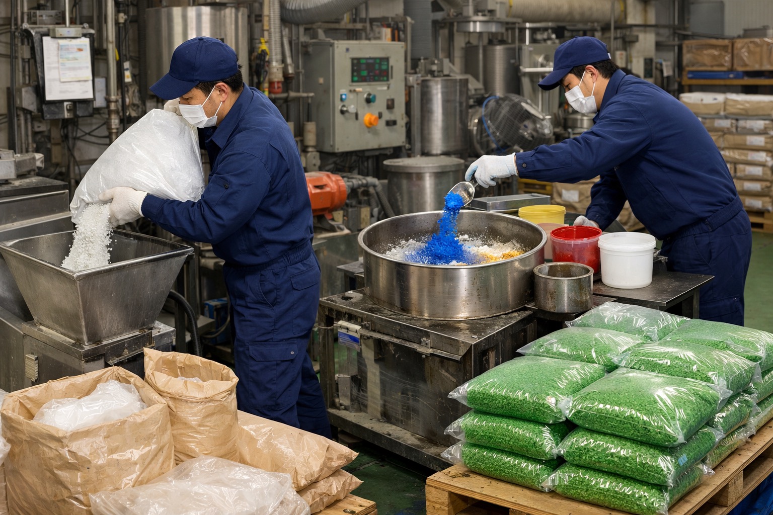 プラスチックペレットの染色作業員/日勤/基本土日祝日休み/大型連休あり